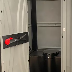 – Durų užraktas su spalvine indikacija išorėje „Užimta – Laisva”. Nesinaudojant biotualetu iš išorės jį galima užrakinti specialiu raktu ir pakabinama spyna.