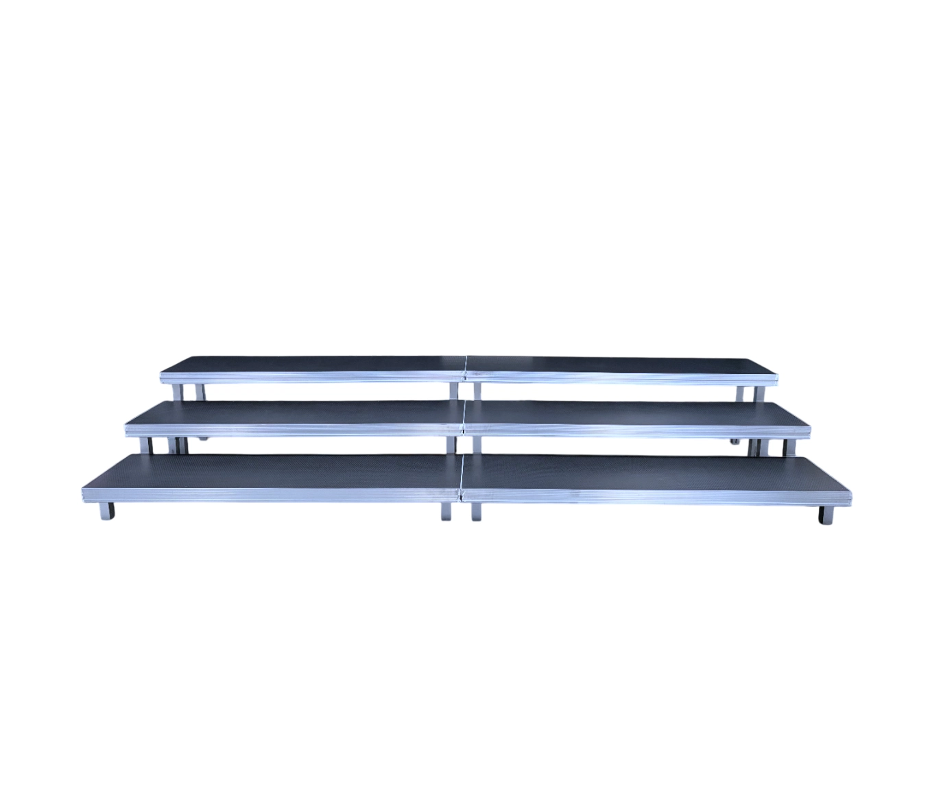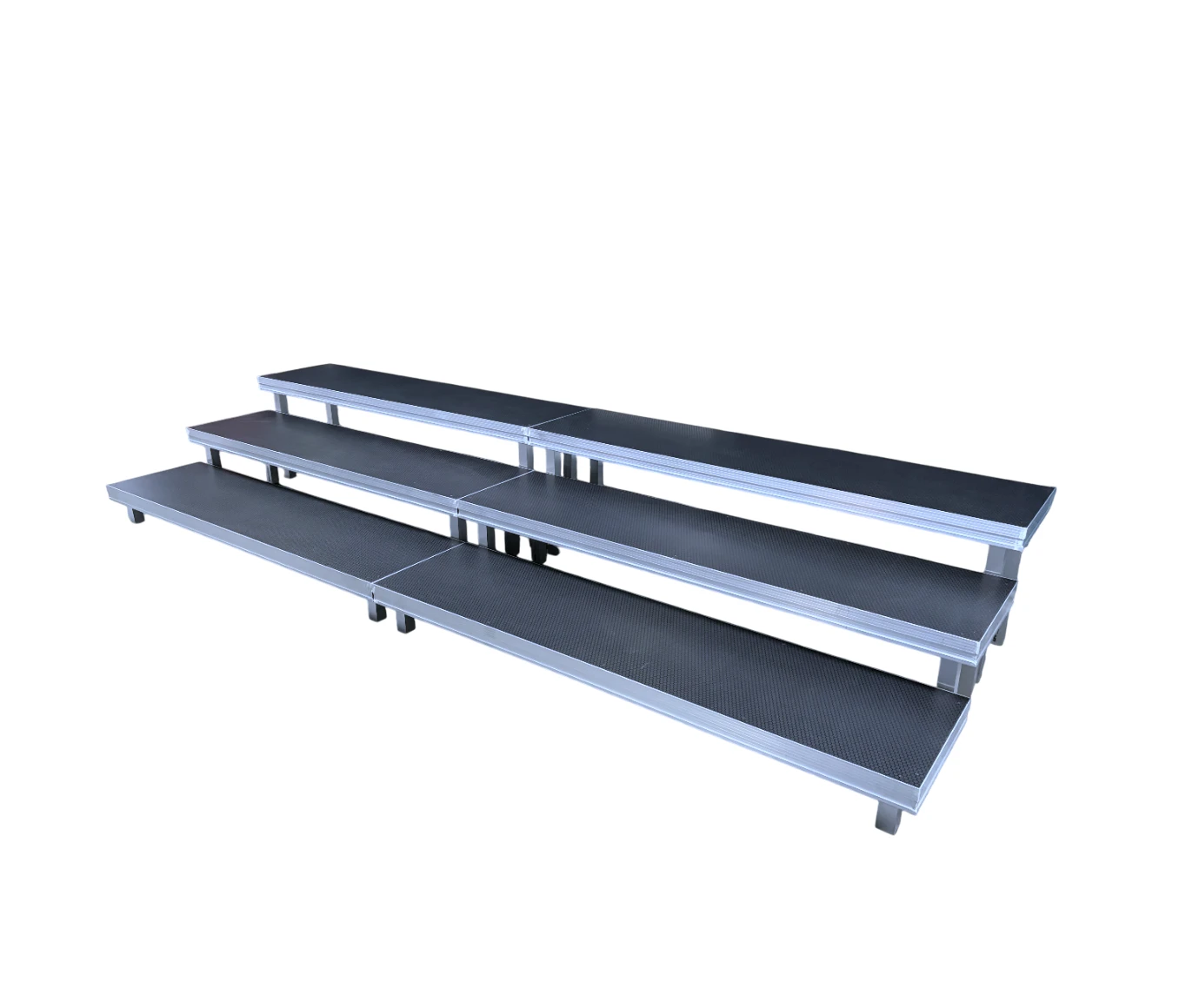 Choro pakylos komplektas, skirtas patogiam ir saugiam chorų, ansamblių ar kitų kolektyvų išdėstymui. Konstrukcija užtikrina stabilumą, ilgaamžiškumą ir saugų naudojimą tiek vidaus, tiek lauko sąlygomis.