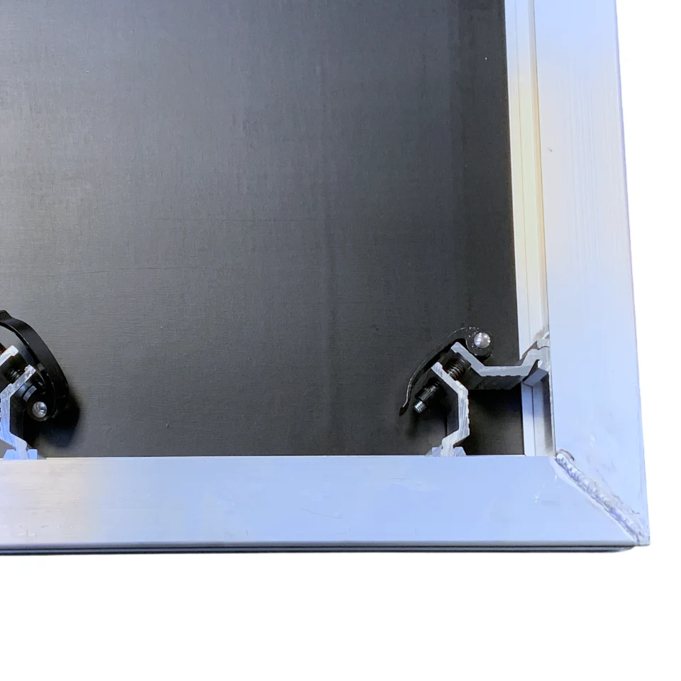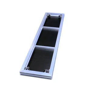 SP podesto rėmas pagamintas iš korozijai atsparaus aliuminio, o viršutinė dalis – iš 18 mm storio vandeniui ir atmosferos poveikiui atsparios medienos plokštės su juodu neslidžiu paviršiumi, užtikrinančiu saugų stovėjimą.