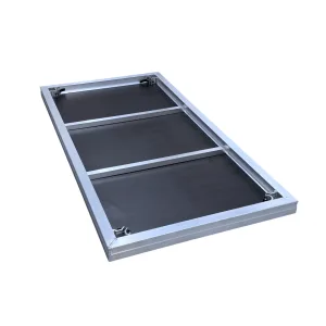 SP podesto rėmas pagamintas iš korozijai atsparaus aliuminio, o viršutinė dalis – iš 18 mm storio vandeniui ir atmosferos poveikiui atsparios medienos plokštės su juodu neslidžiu paviršiumi, užtikrinančiu saugų stovėjimą.